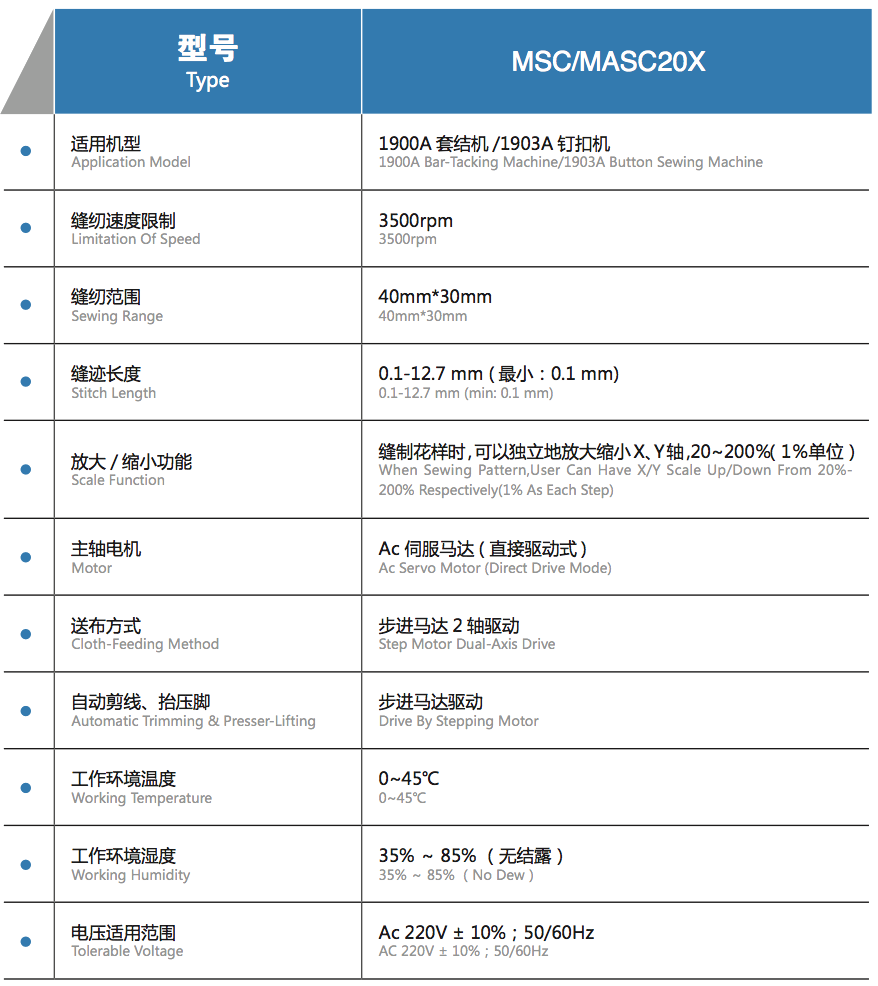 MSC/MASC20X 产品规格技术参数