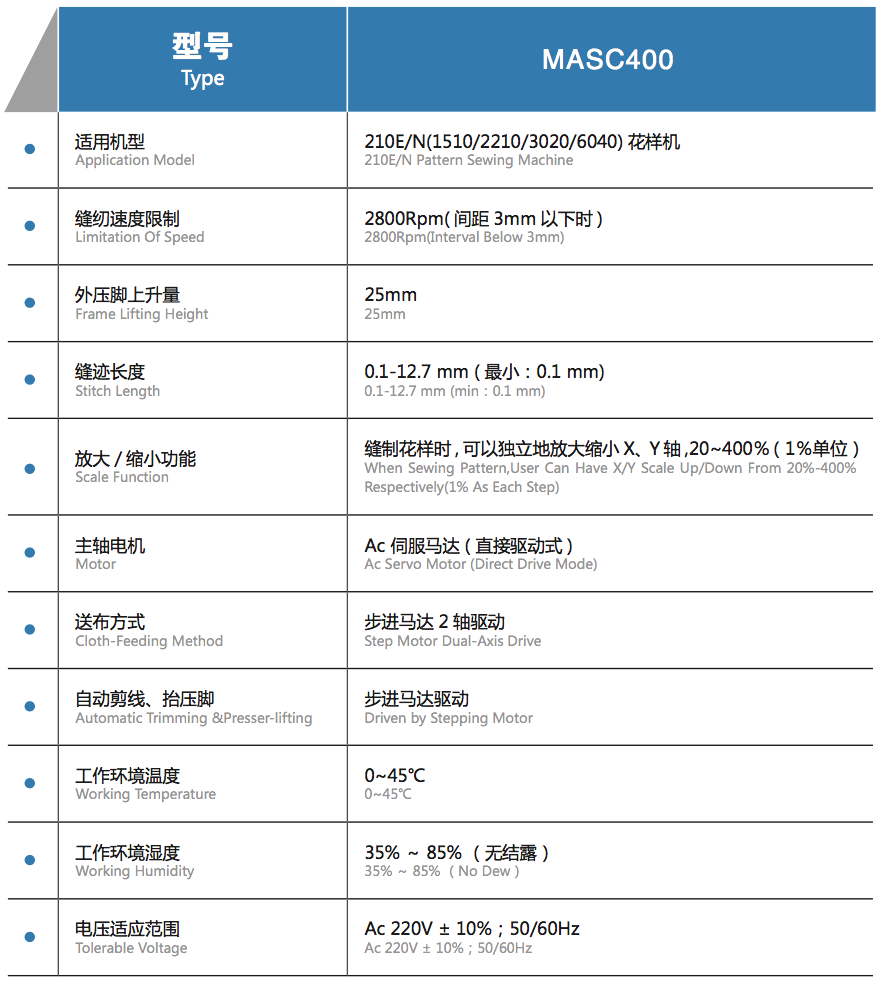 - MASC400 Computerized Control System for High Speed Pattern Sewing Machine