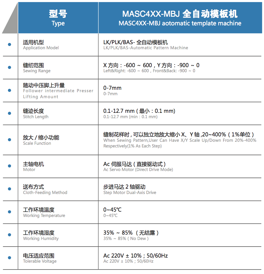 - MASC4XX-MBJ computerized control system for automatic pattern machine