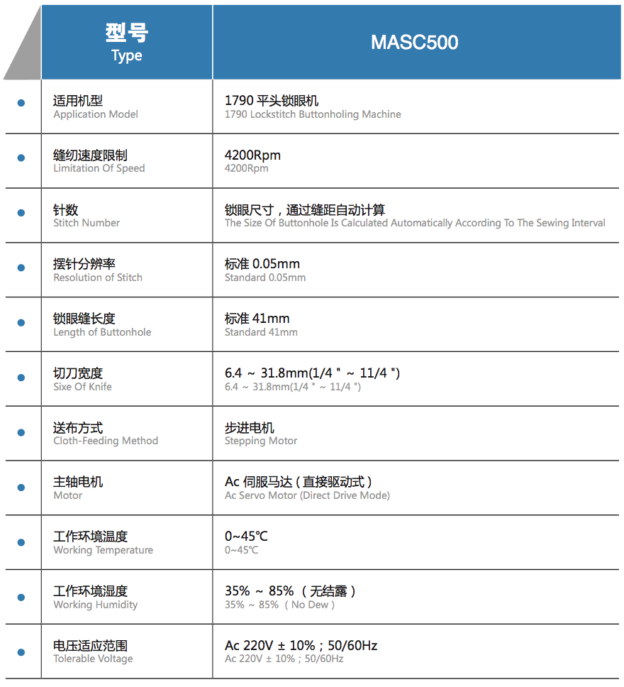 - MASC500 Computerized Control System for Lockstitch Buttonholing Machine
