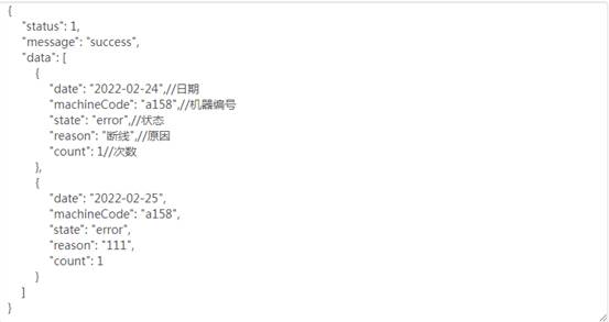 通过该接口可以查询一段时间内设备的故障停机数据,返回数据示例:
