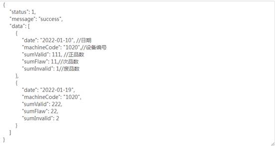 通过该接口可以查询一段时间内设备的产量数据,返回数据示例: