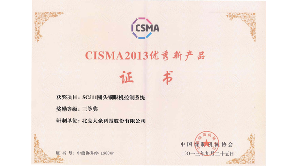 大豪公司SC511圆头锁眼机控制系统被评为“2013年CISMA优秀新产品”