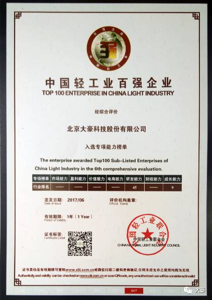 2016年度“中国轻工业百强企业”榜单发布,大豪获四项大奖