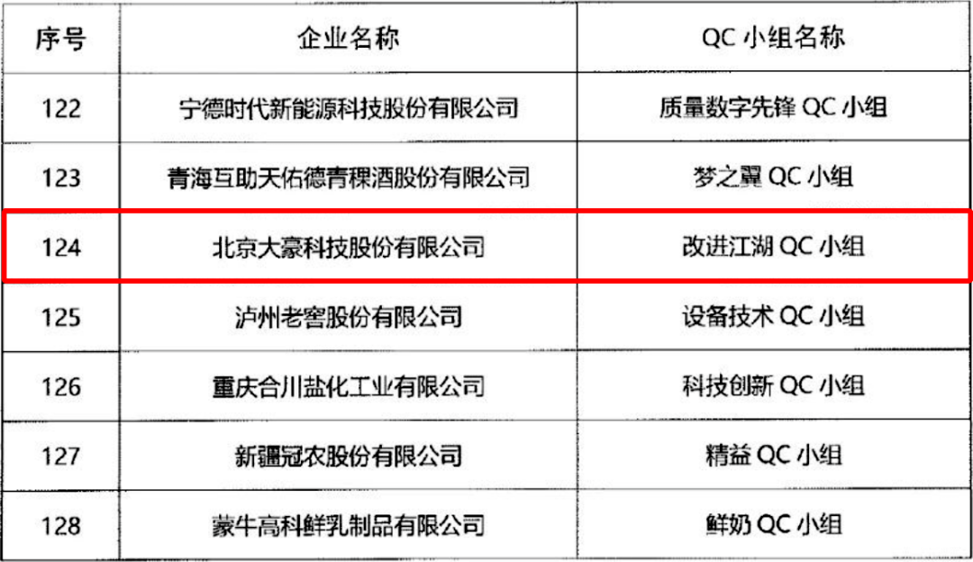 大豪荣获“2023年全国轻工行业优秀质量管理小组”荣誉称号