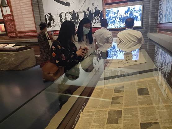 在现场,大家亲眼看到了马克思《布鲁塞尔笔记》第四笔记本手稿、陈独秀创办的《新青年》、朱德总司令使用过的手枪、抗美援朝战争中志愿军使用的武器等珍贵的历史文物;看到了一大会址和红船、遵义会议会址、东北抗日游击战等复原场景;还看到了苏联摄影师摄录的延安军民生活实录、开国大典、建国以来重大阅兵式实录等珍贵影像。大家驻足在观影室,观看红军爬雪山、过草地的一幕幕模拟长征场景,动画结尾的“每一代人有每一代人的长征路,每一代人都要走好自己的长征路”字样熠熠生辉。