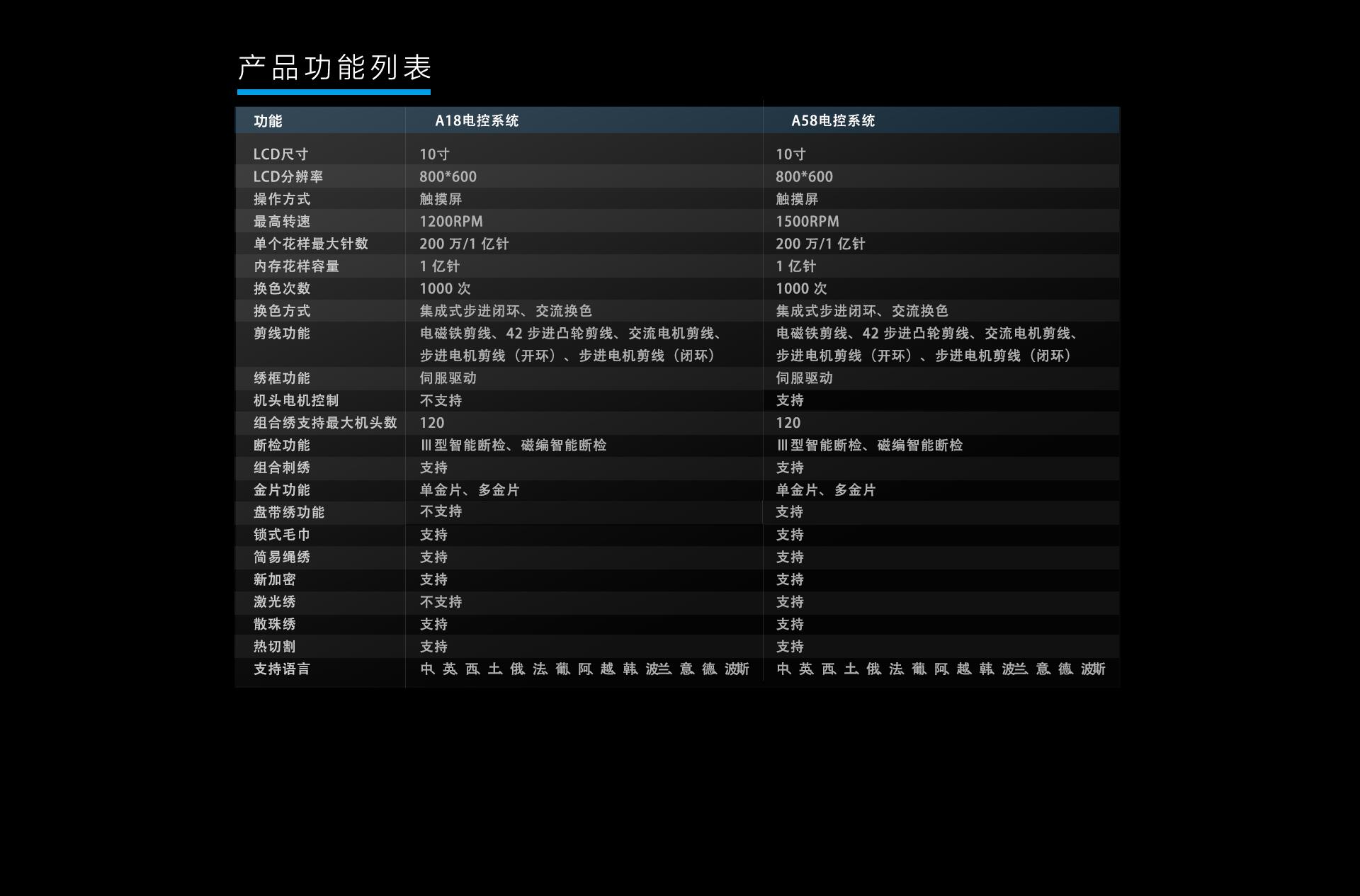 BECS-A18/A58刺绣机电控系统是大豪公司推出的一款中端刺绣机电控产品,突破以往刺绣机电控系统设计理念,采用集成一体式电控架构优化设计,实现主控系统和驱动系统的集成整合,控制性能得到提升;电控与整机接口大幅减少,电控安装应用更加简单方便;刺绣机专用的多轴联动控制技术,实现对主轴、X/Y绣框高速协同控制,实现绣品质量和刺绣效率的提升;系统采用全数字开关电源技术,不受电网波动影响,系统供电更加稳定,电磁兼容性和抗干扰性大大提高的同时,降低电控硬件故障率。