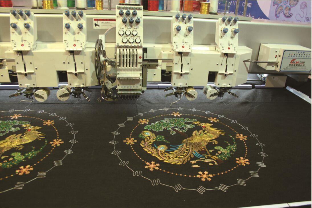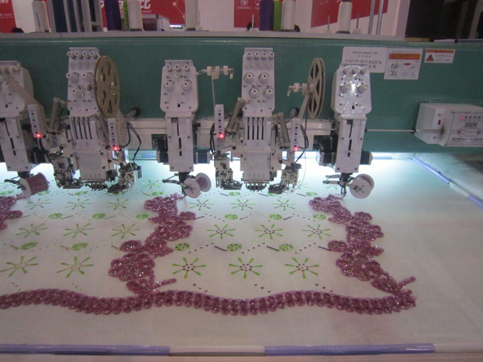 随着简易绳绣装置作为一种经济型绳绣实现方案逐步为市场接受,在原有平绣、 盘带绣、金片绣三合一机型基础上,平绣机头增加简易绳绣装置,配合盘带绣装 置,也可以实现绳绣和缠绕绣、带绣组合绣品效果。大豪电控支持同一台机器上实现盘带绣和绳索绣的组合,并可以独立设置参数。