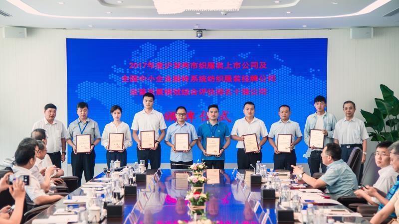大豪公司荣获2017年度纺织服装行业上市公司综合评估第一名